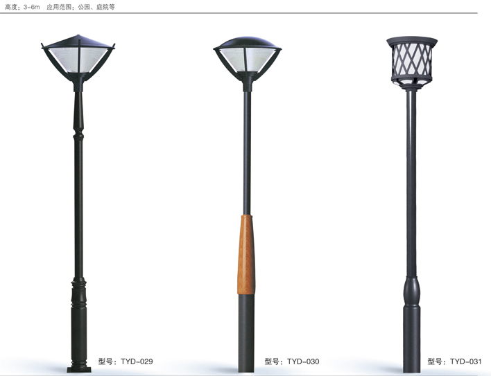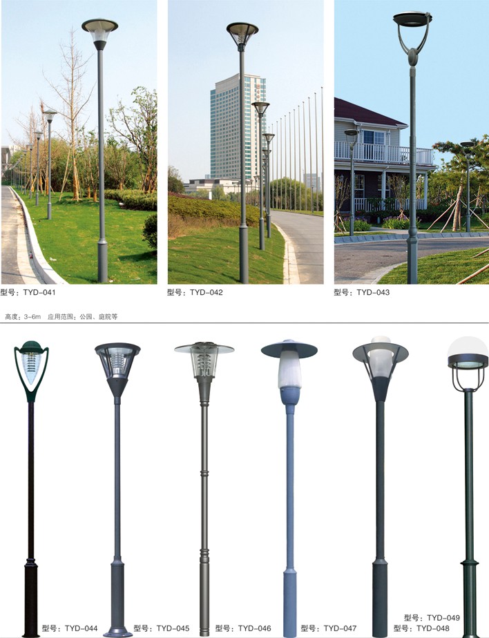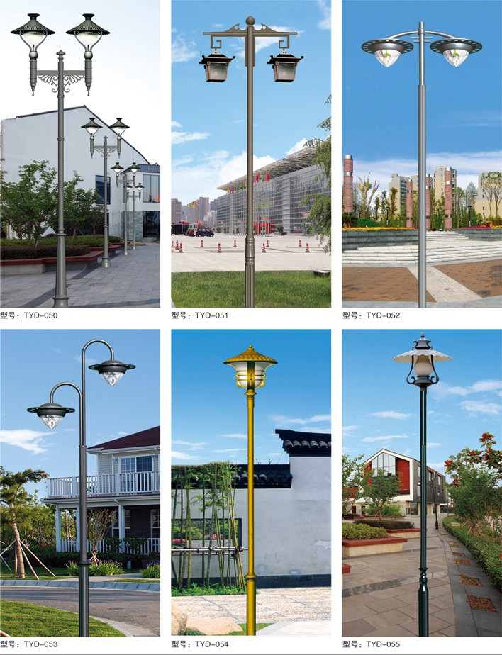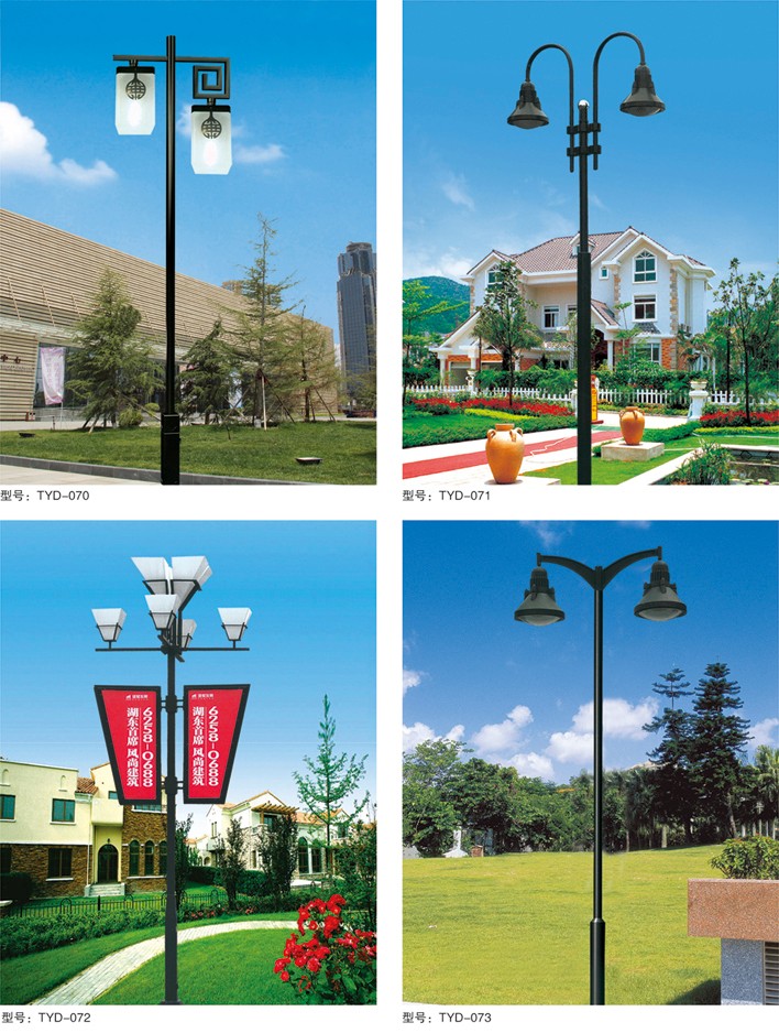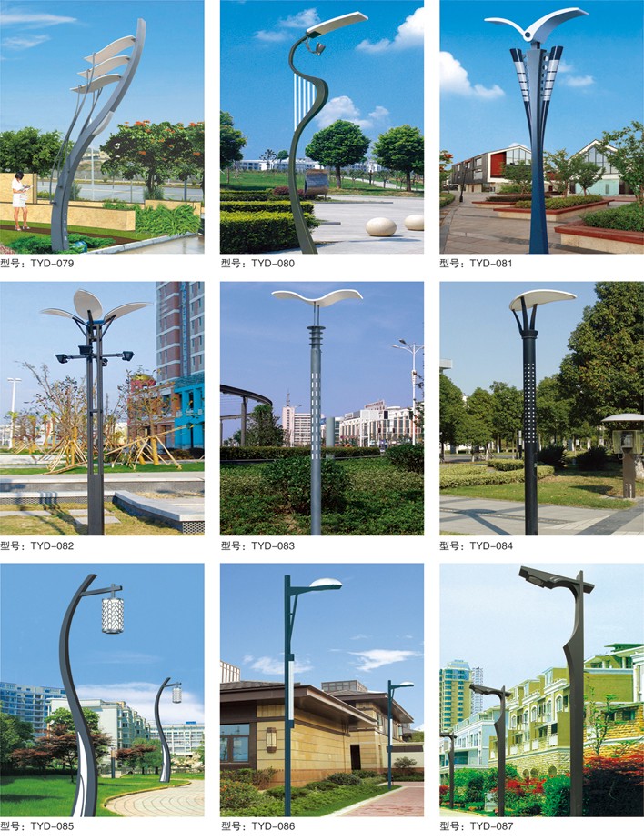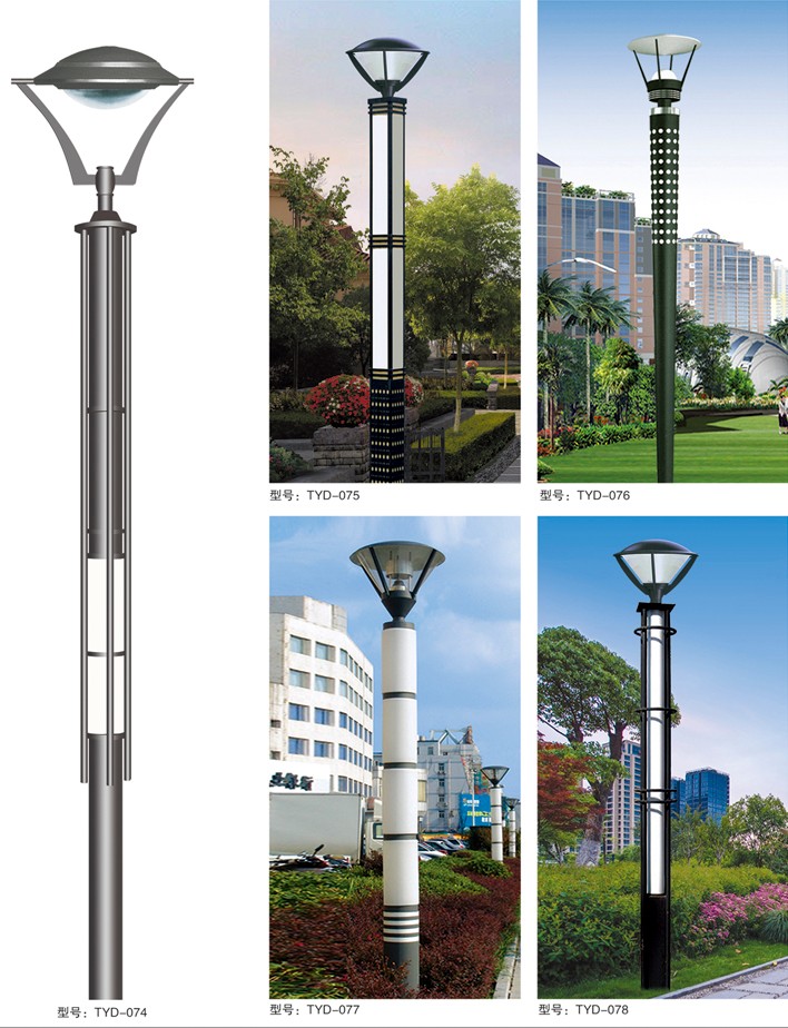庭院燈系列燈飾照明是園林景區(qū)、文化休閑娛樂場所、步行街、商業(yè)街、住宅小區(qū)、行車道兩側等場所所普遍使用的裝飾及照明光源配置形式,是裝飾型照明燈飾產(chǎn)品。燈桿材質多樣,光源運用靈活多變,結構形態(tài)千姿百態(tài),是美化、亮化,綠化的有機結合,光與影。燈與藝術的完美結合。